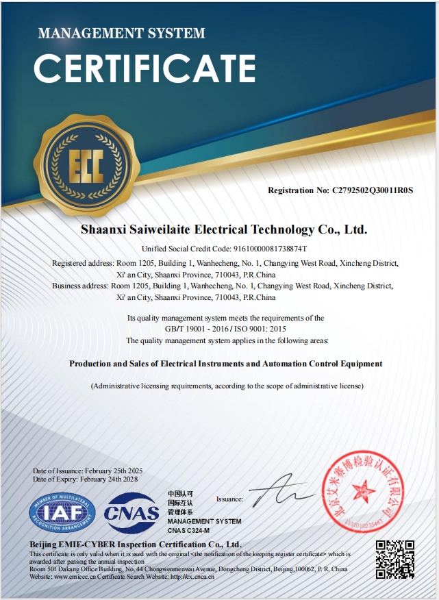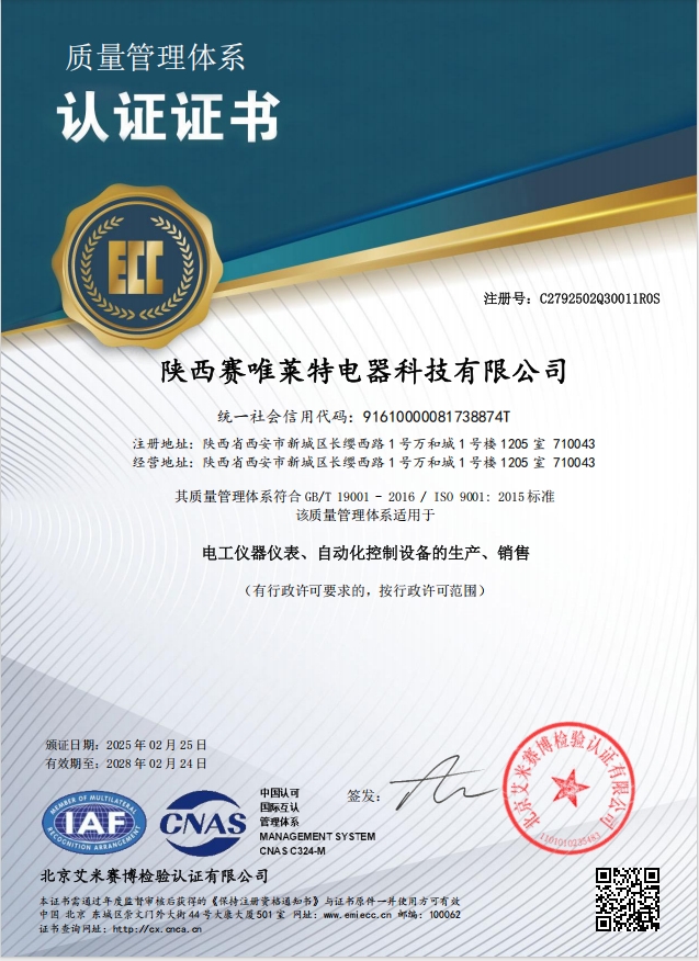 陜西賽唯萊特電器科技有限公司曾取得ISO9001認證